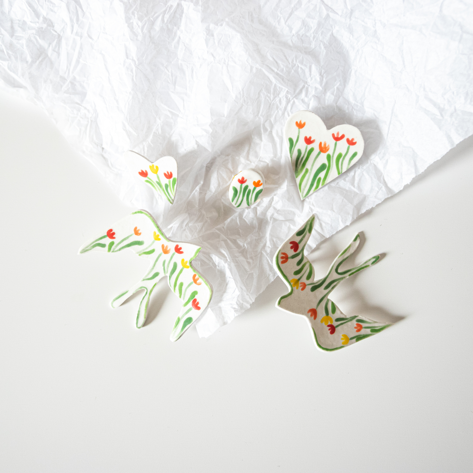Broșă din ceramică modelată manual, cu ac de siguranță